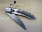 Après 5 ans de recherche, j’ai mis au point et intégré dans une très faible épaisseur (14 mm au plus épais) une vis sans fin irréversible à commande tangentielle. Le couteau, ambidextre, ne peut s’ouvrir ou se fermer qu’avec sa manivelle.