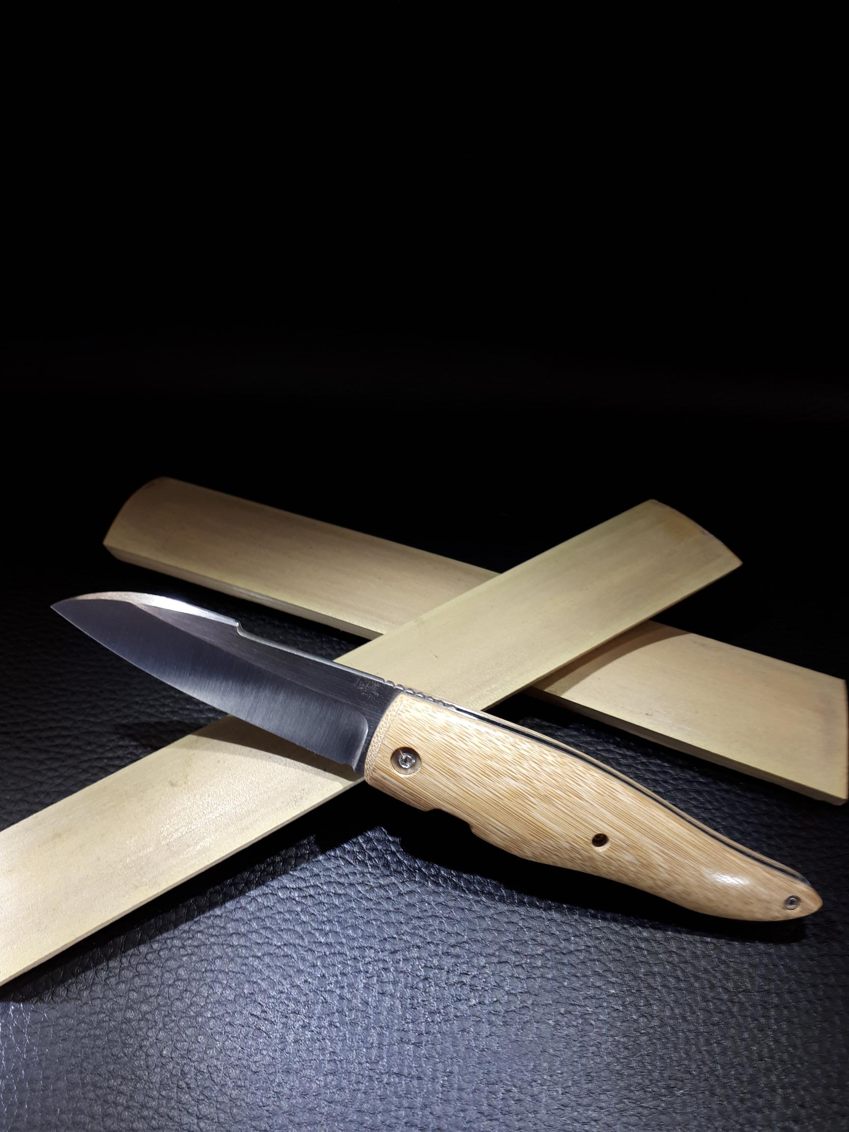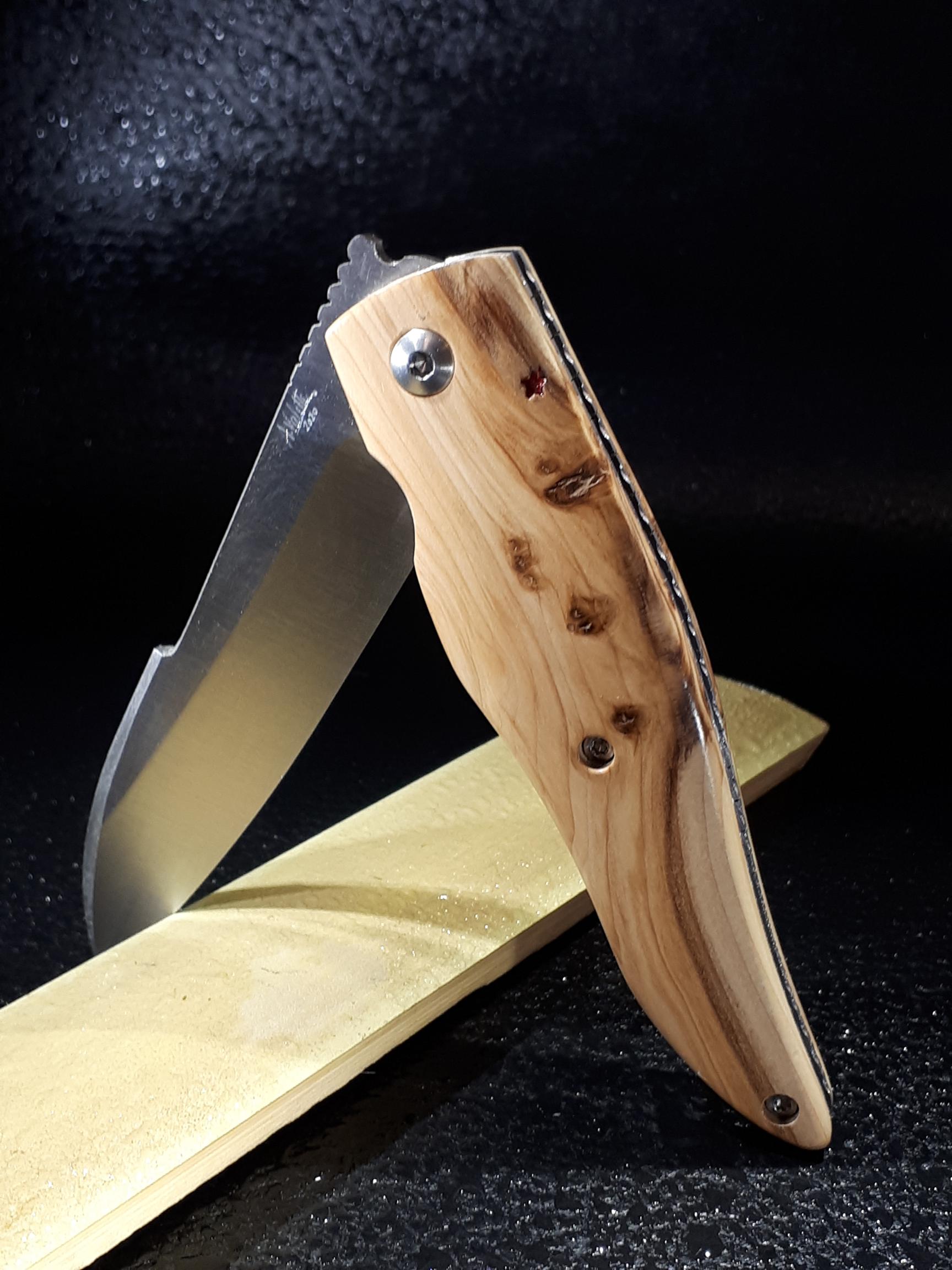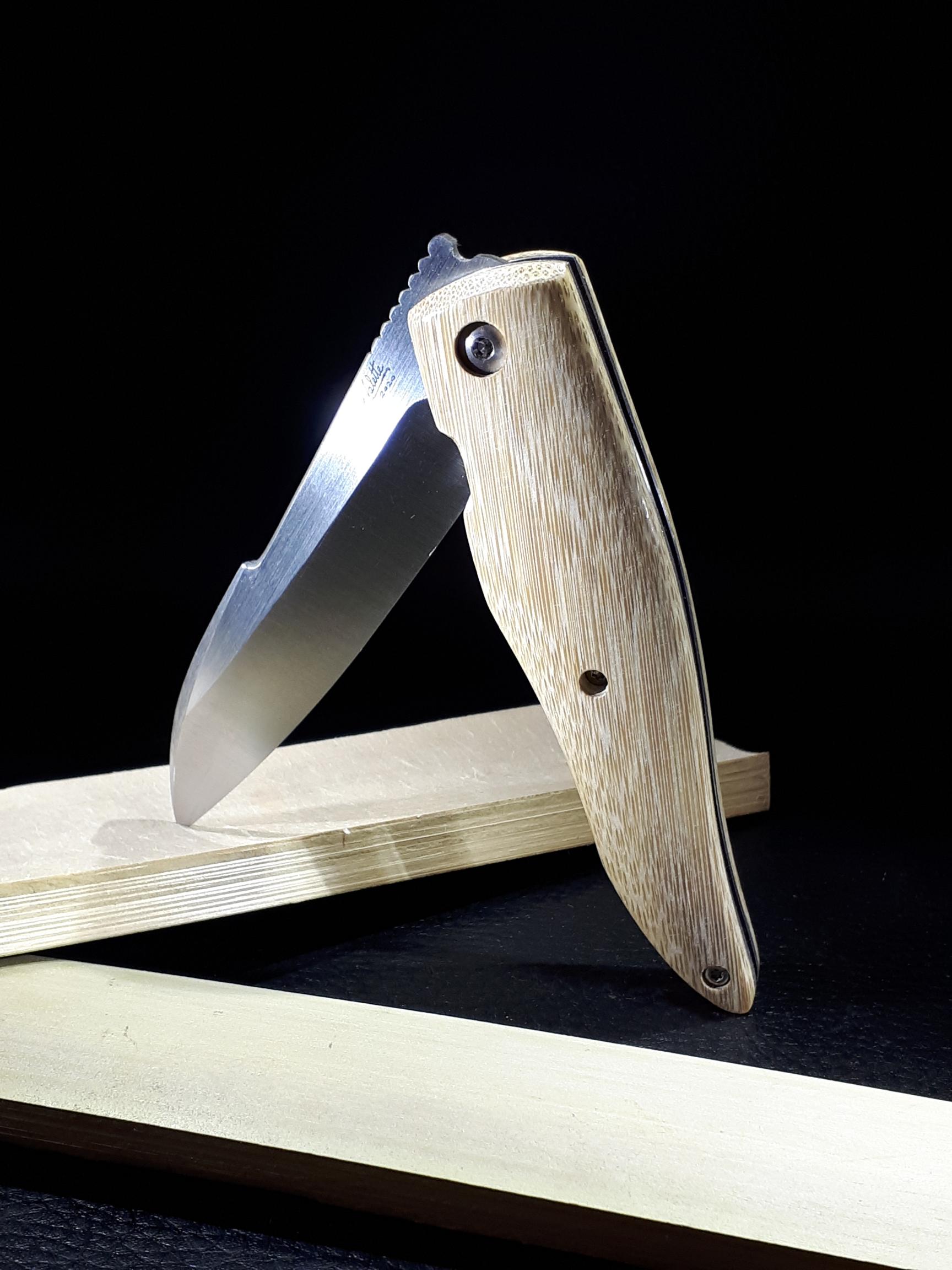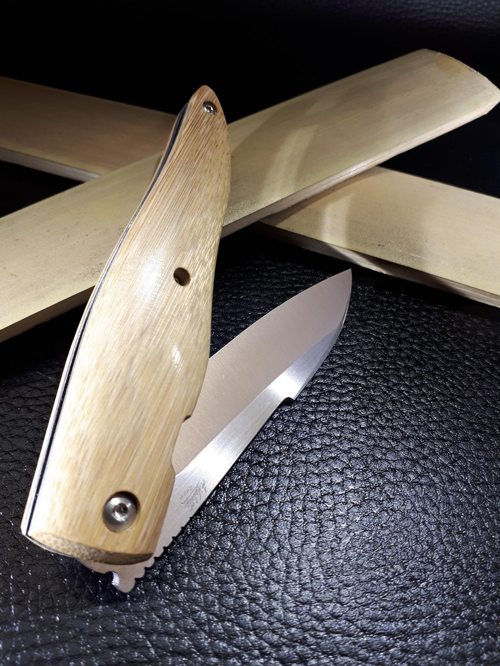La lame est en alenox cr 18, un acier inox moderne extrêmement résistant billant prés de 60 hrc.