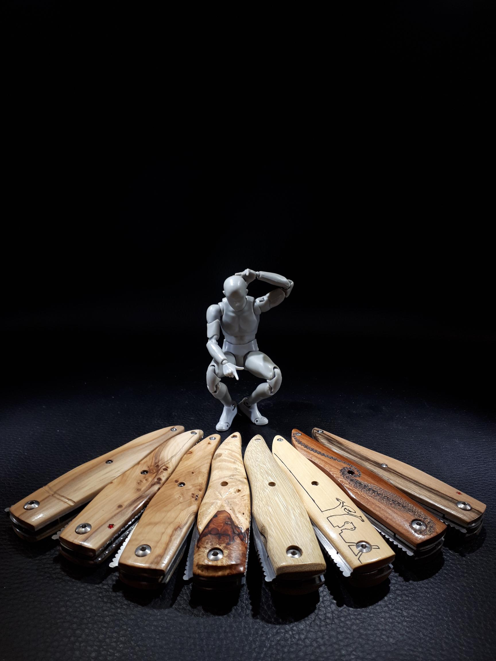 Les manches sont faits de bois précieux au grès de mes envies ou celles de mes clients...