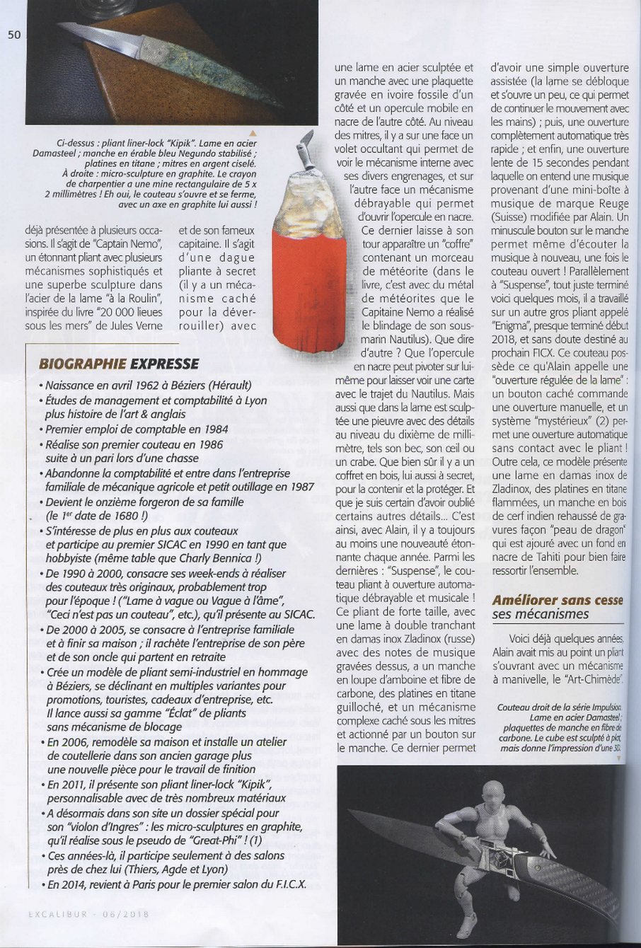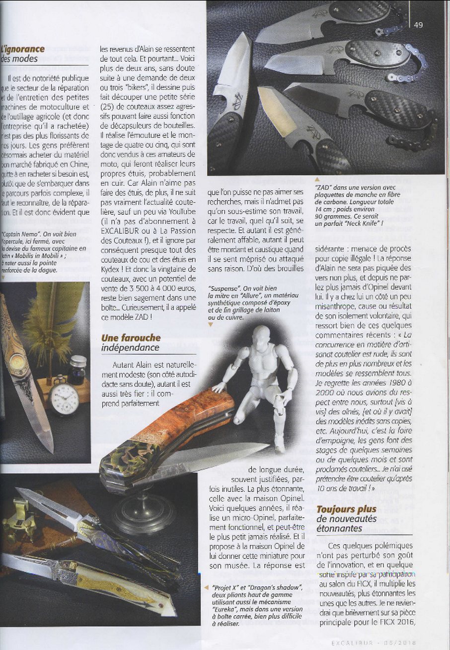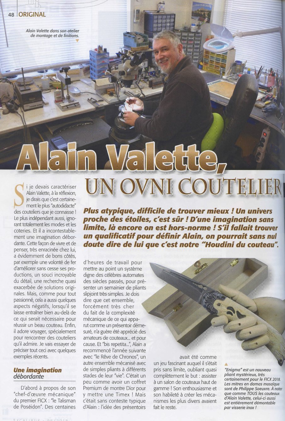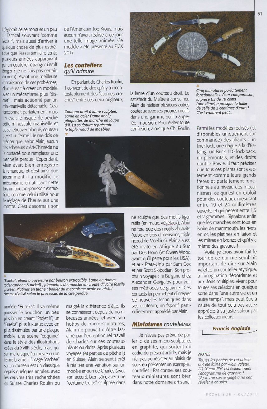 Article sur Alain Valette dans le magazine Excalibur de juin 2018 Un bel article de 4 pages sur Alain Valette dans le magazine Escalibur. Article mis en ligne le 26 octobre 2018 dernière modification le 27 novembre 2021