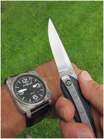 Prototype de couteau pliant à friction sur le thème de l’horloger Bell & Ross :