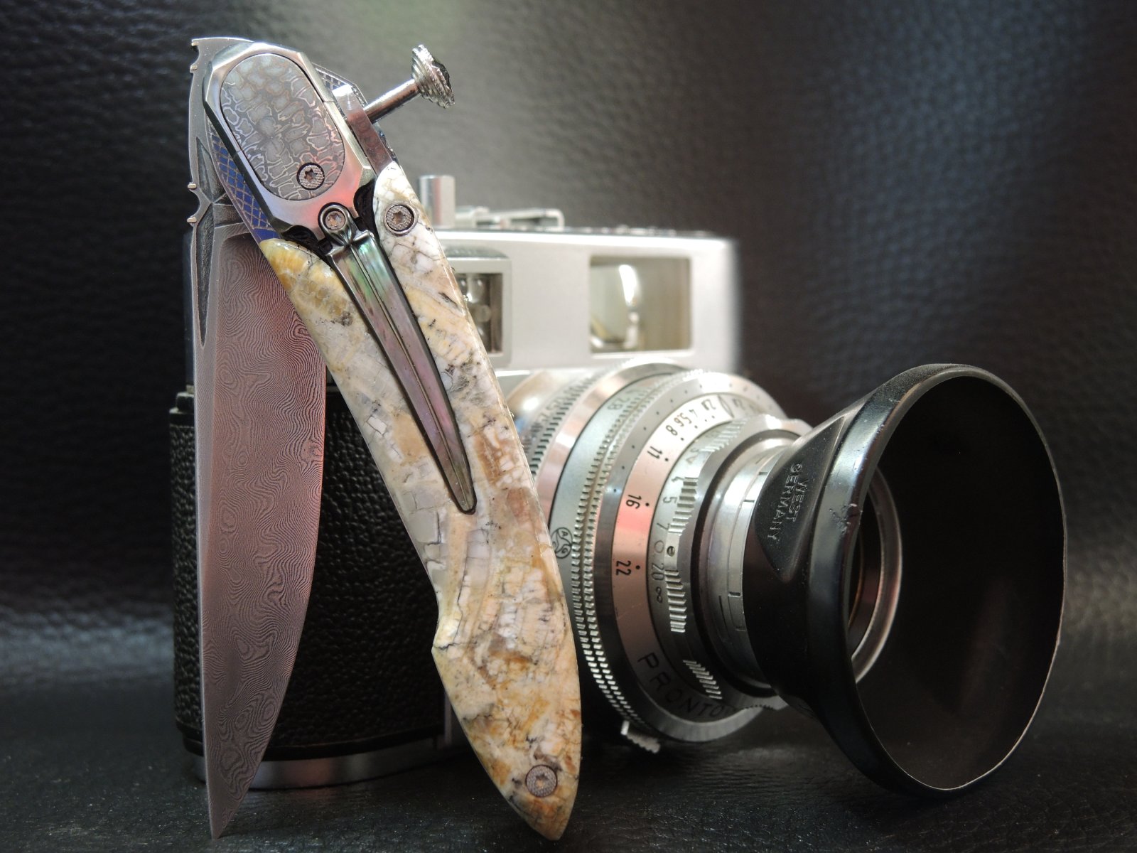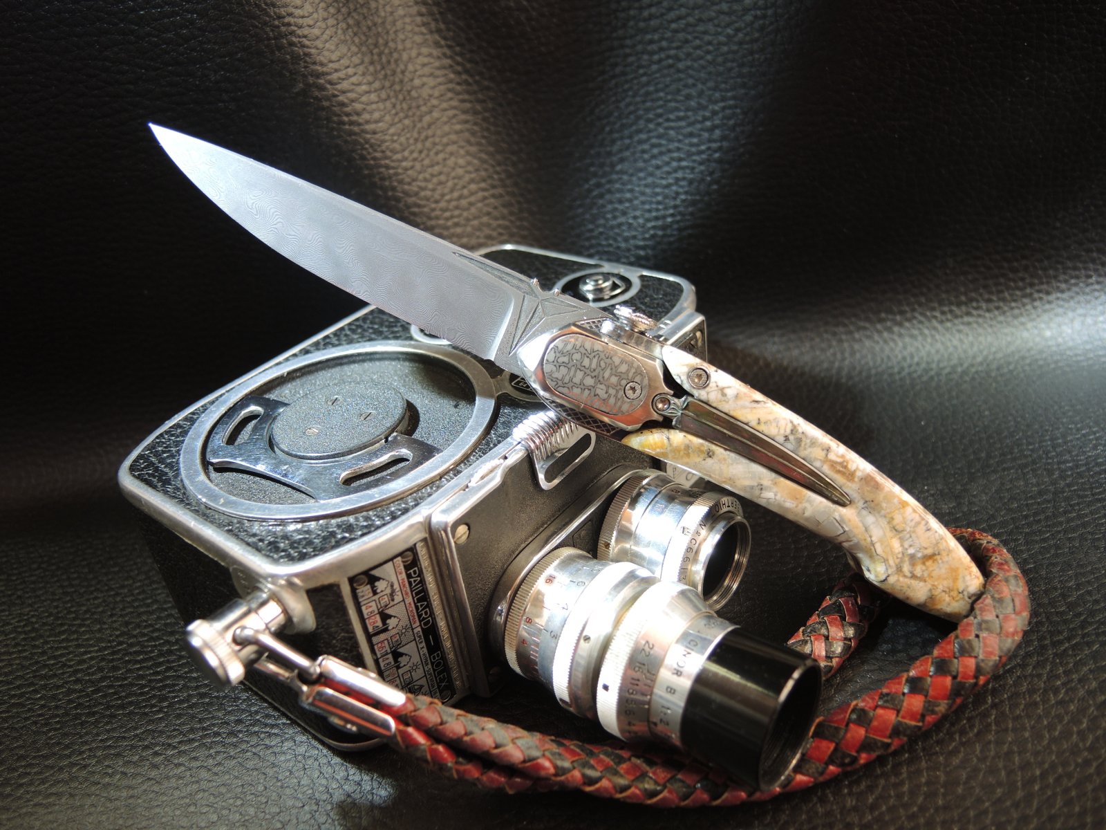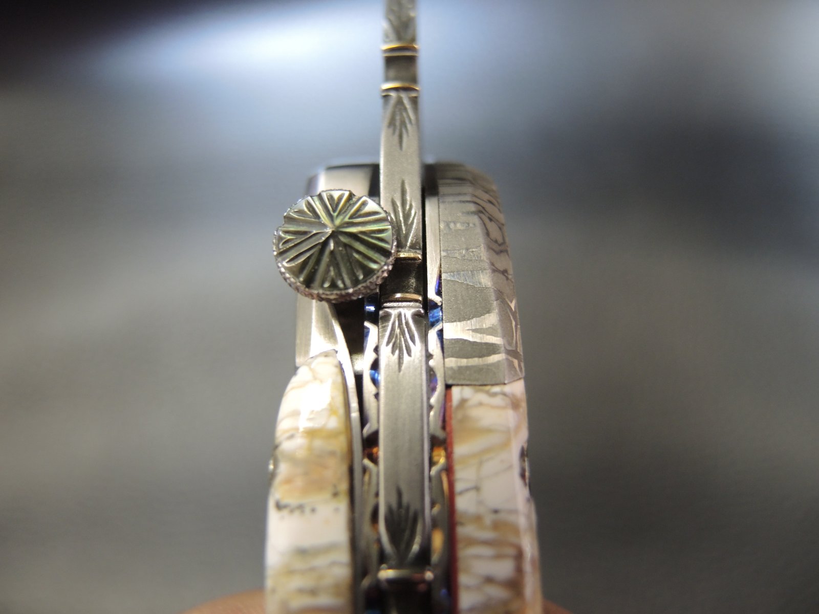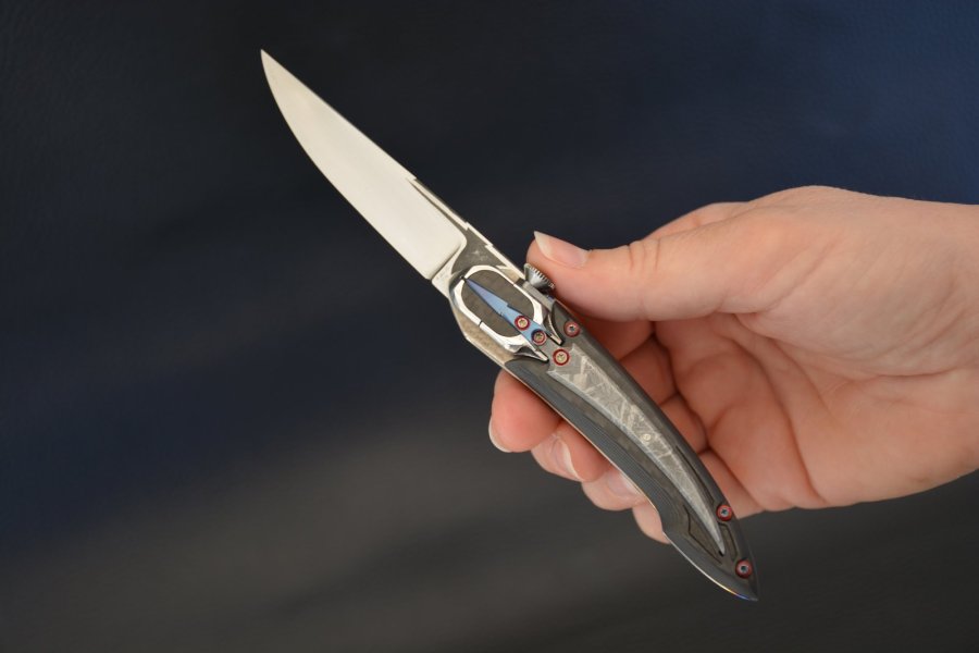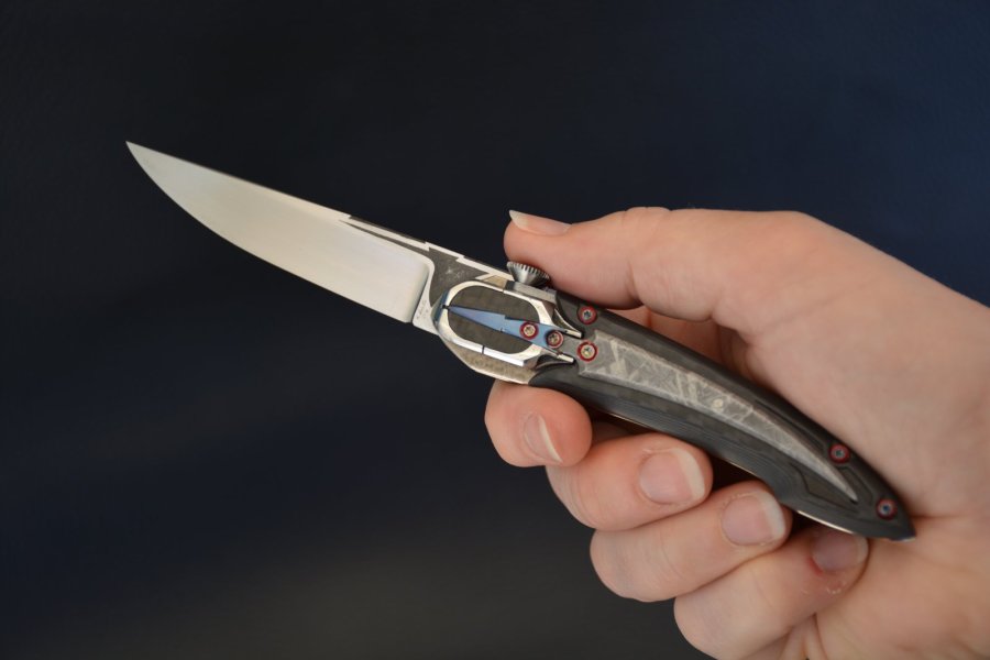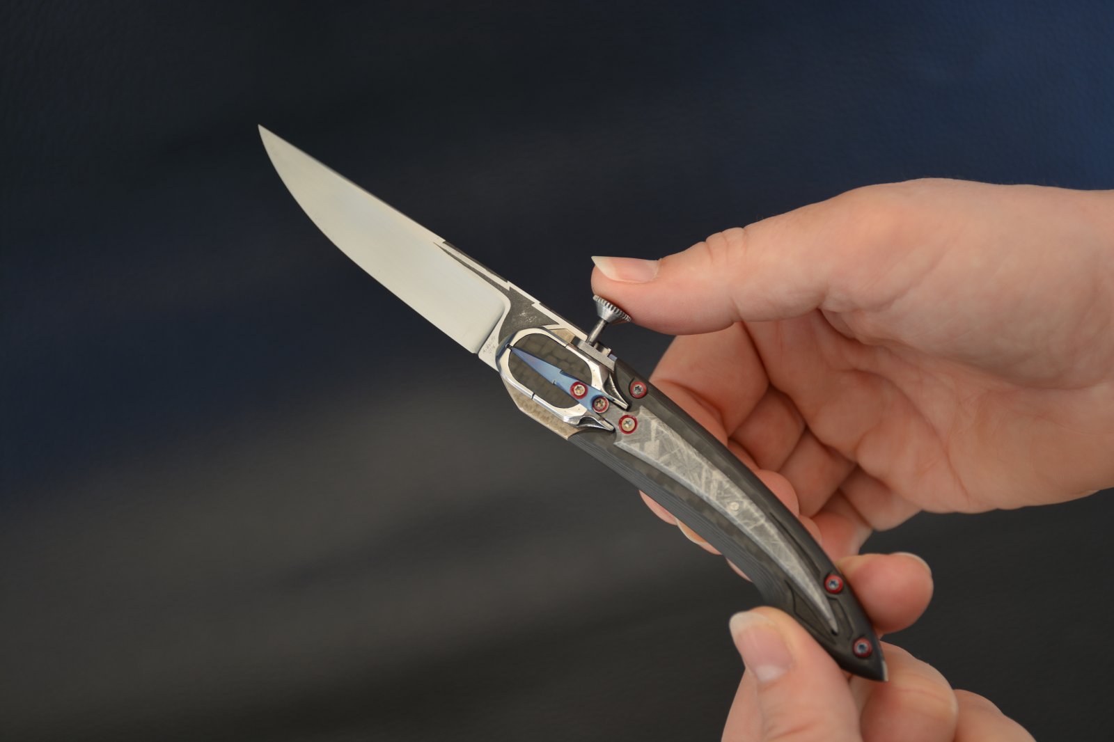 2 ans de réflexions, de tests et d’essais pour fabriquer un bouton escamotable comme celui utilisé pour la mise a l’heure sur les montres de dimension suffisante pour ne pas forcer lors de l’ouverture/fermeture, ne pas gêner la prise en main et l’utilisation du couteau…
