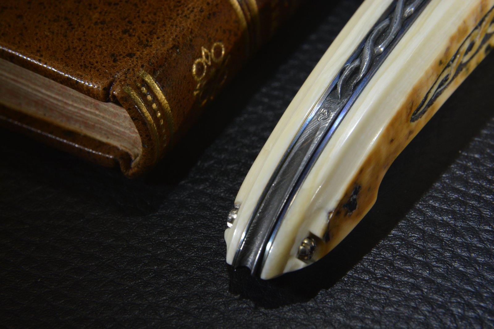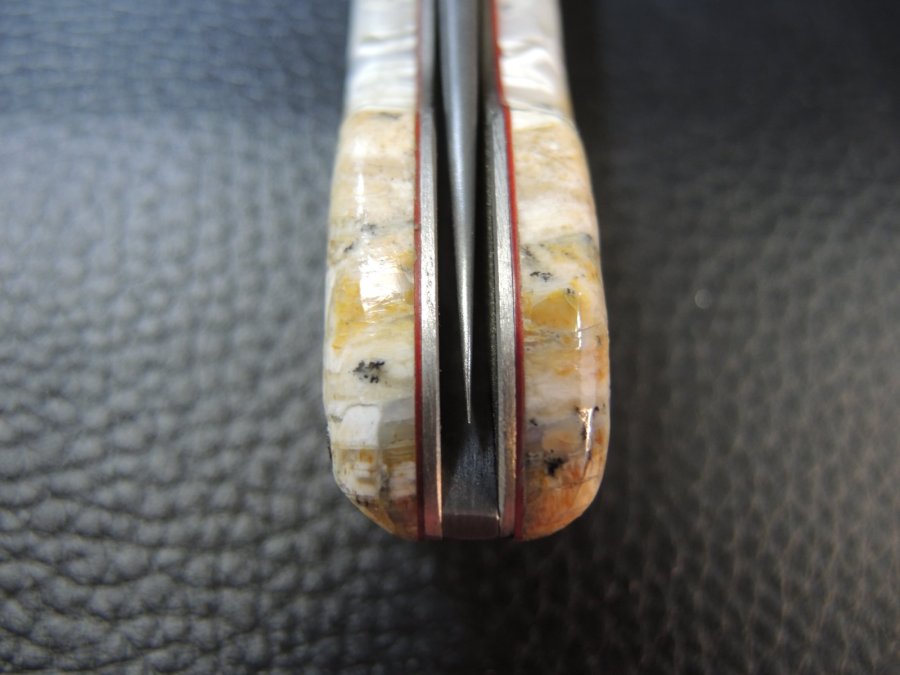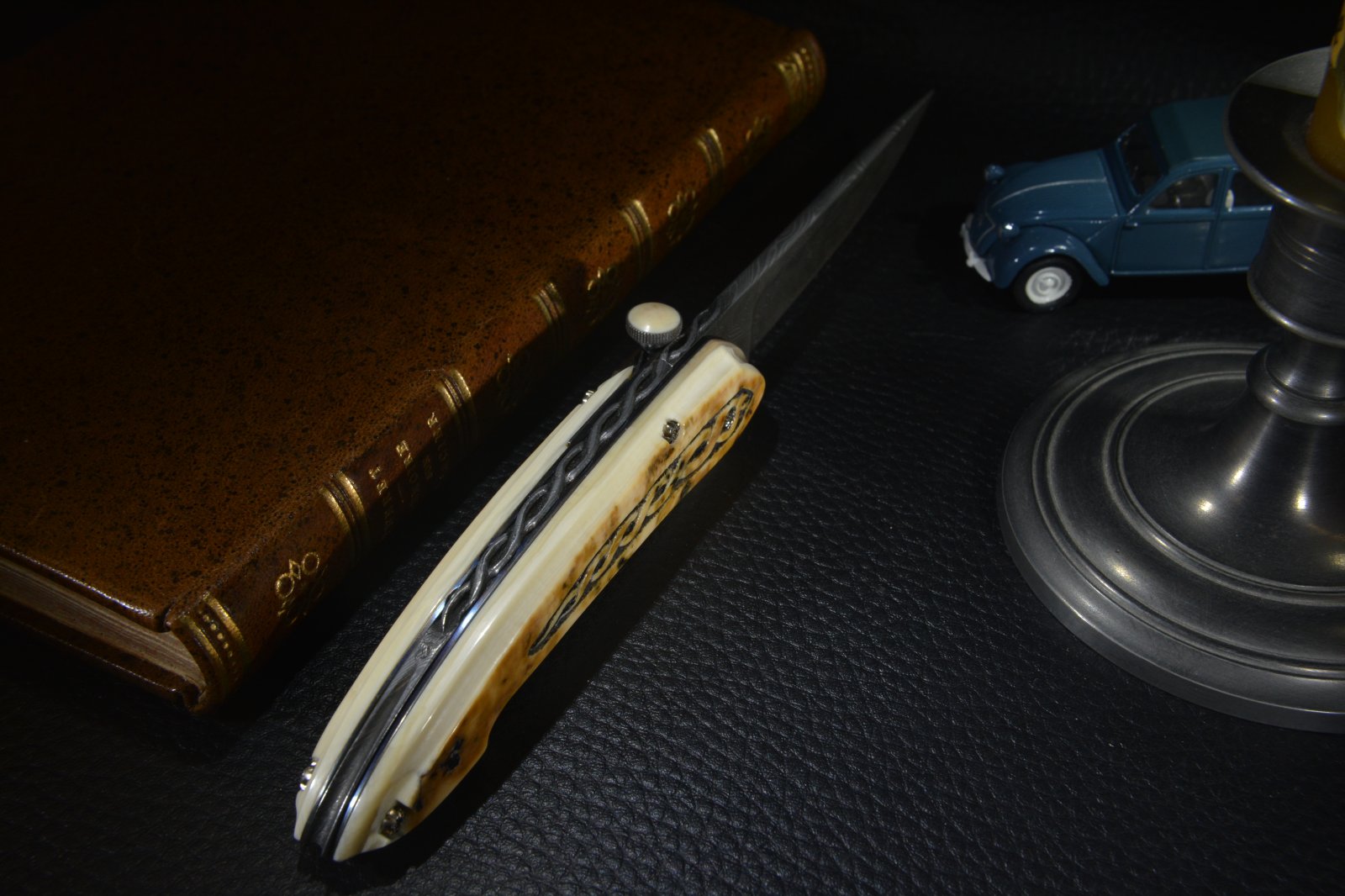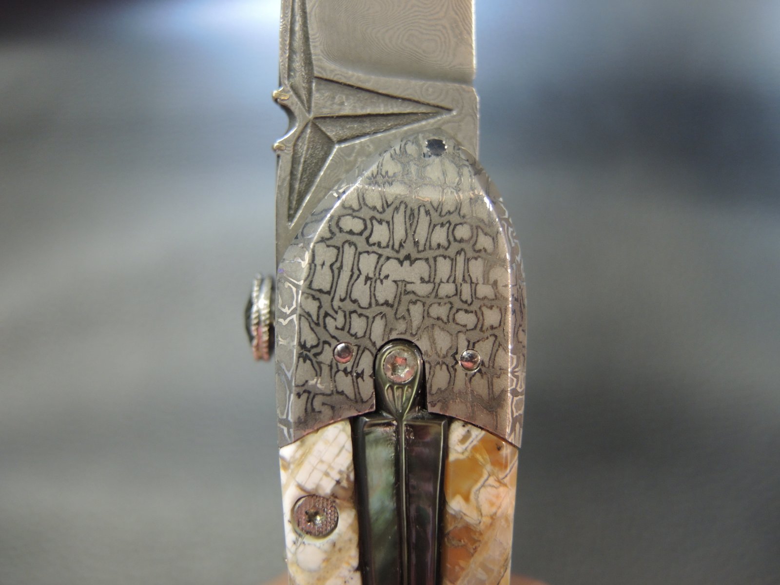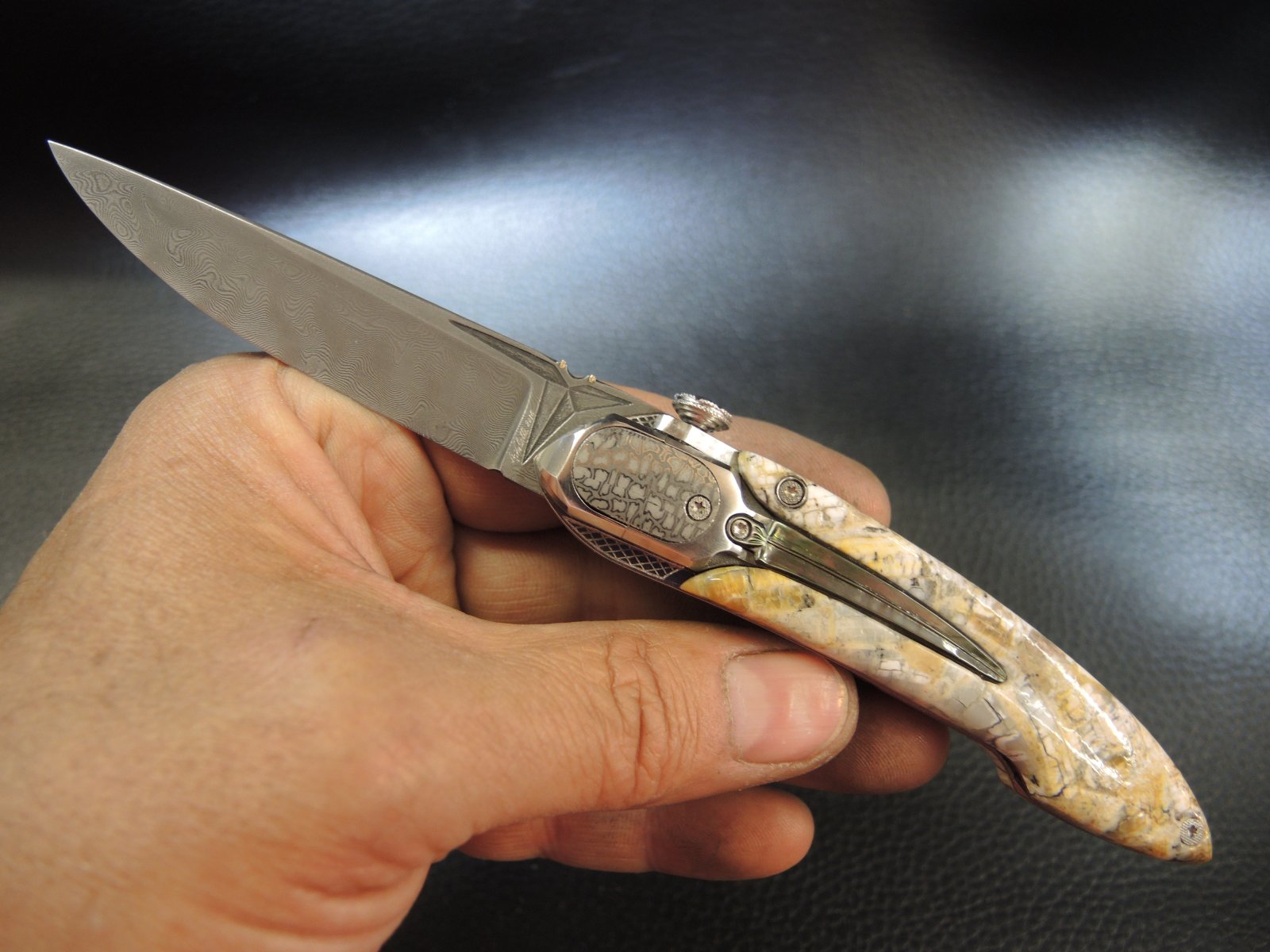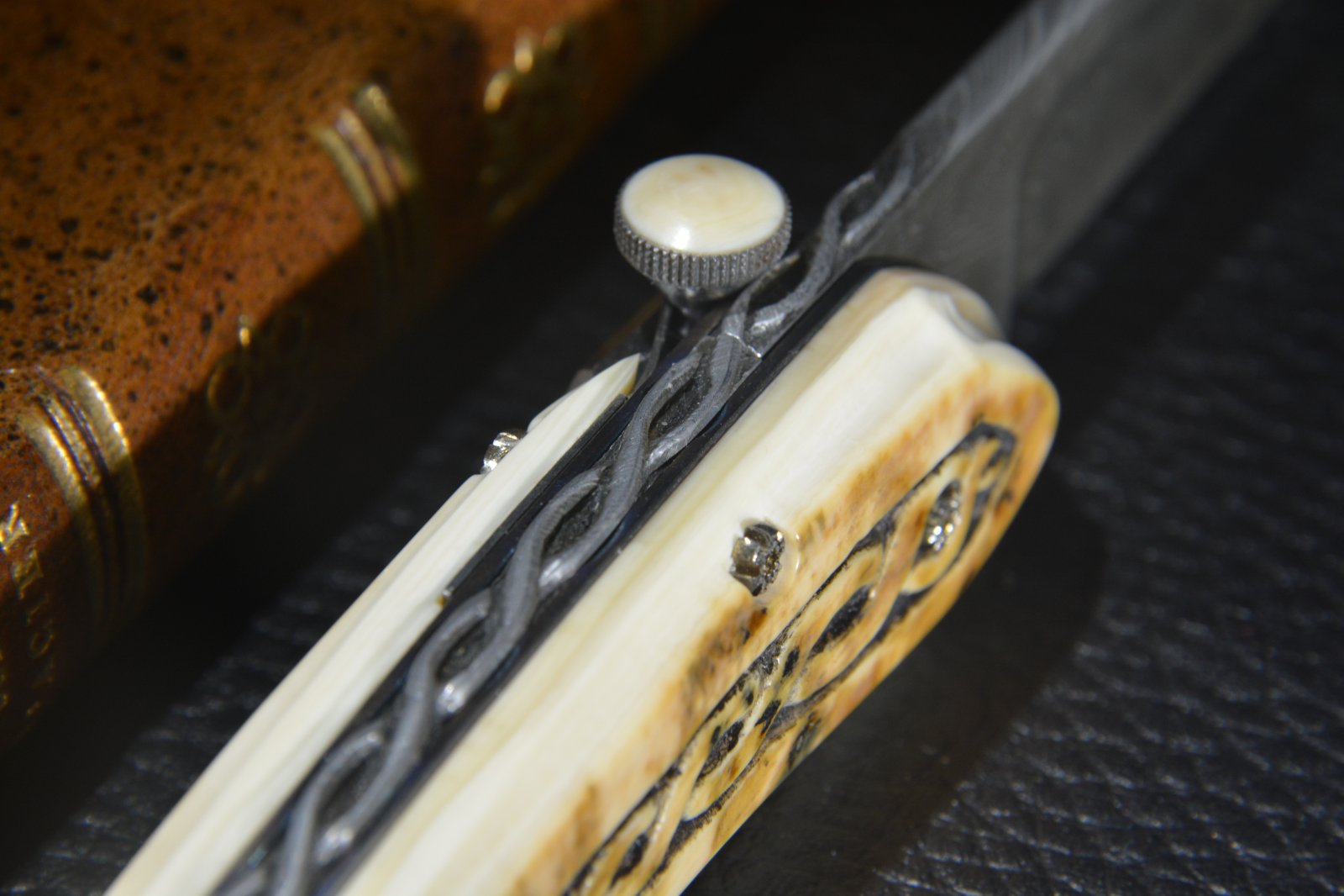 2 ans de réflexions, de tests et d’essais pour fabriquer un bouton escamotable comme celui utilisé pour la mise a l’heure sur les montres de dimension suffisante pour ne pas forcer lors de l’ouverture/fermeture, ne pas gêner la prise en main et l’utilisation du couteau…