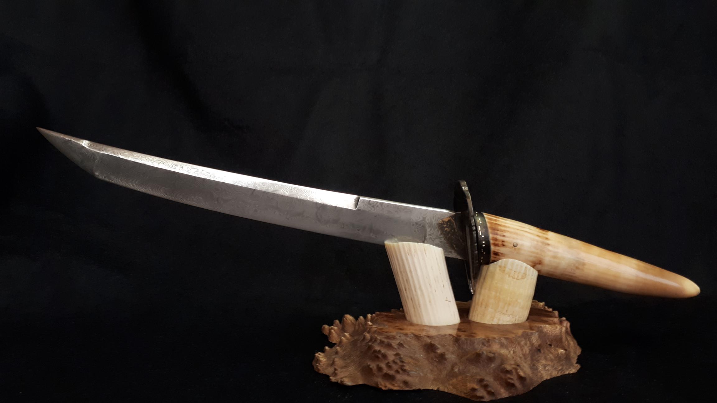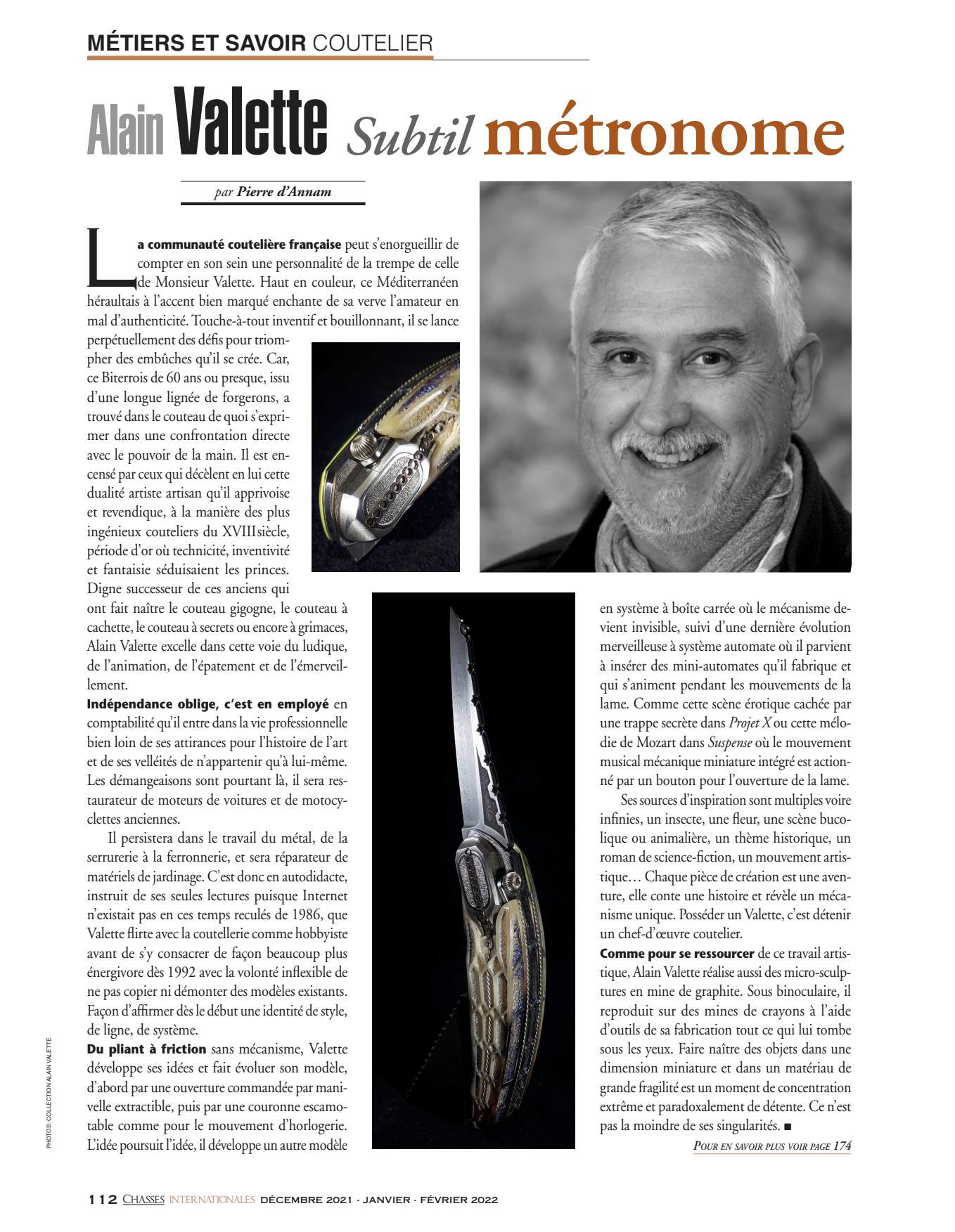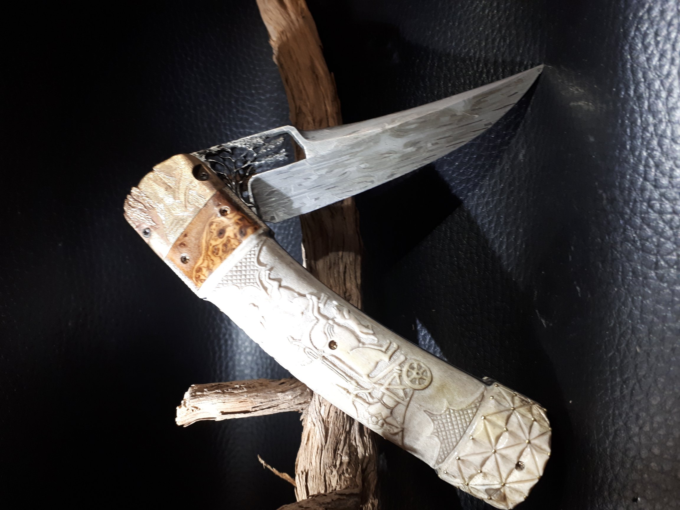 Un ami passionné de modélisme m’a lancé le défi de réaliser un couteau ayant un rapport avec son hobby. L’hélice nous a semblé l’élément le plus significatif d’un avion. Véritables sculptures taillées dans la masse, cet élément essentiel m’a inspiré pour cette création.