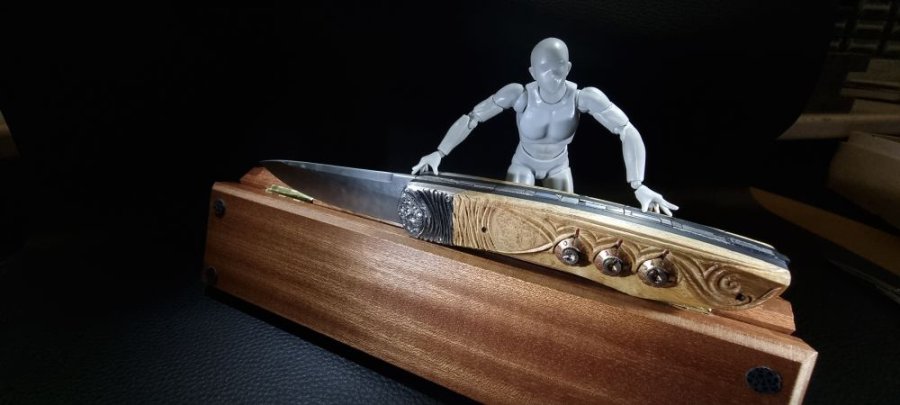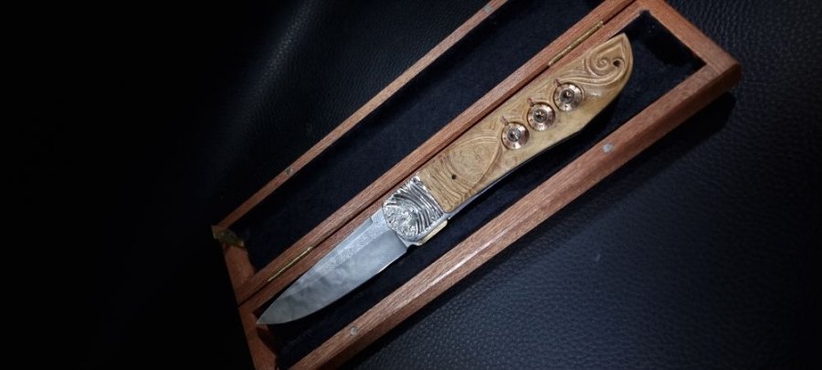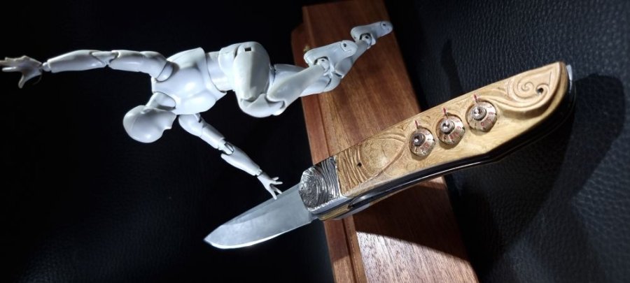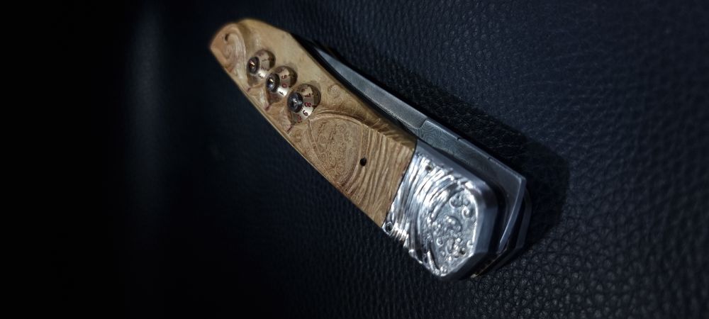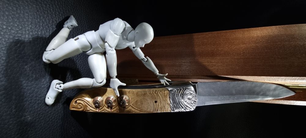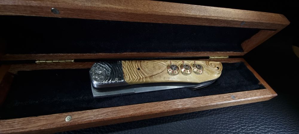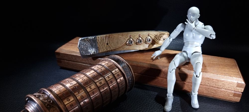 En 2021, un de mes collectionneurs de couteaux atypiques me posait un défi : lui fabriquer un couteau pliant à secrets multiples et inédits dont lui seul serait capable de l’ouvrir !