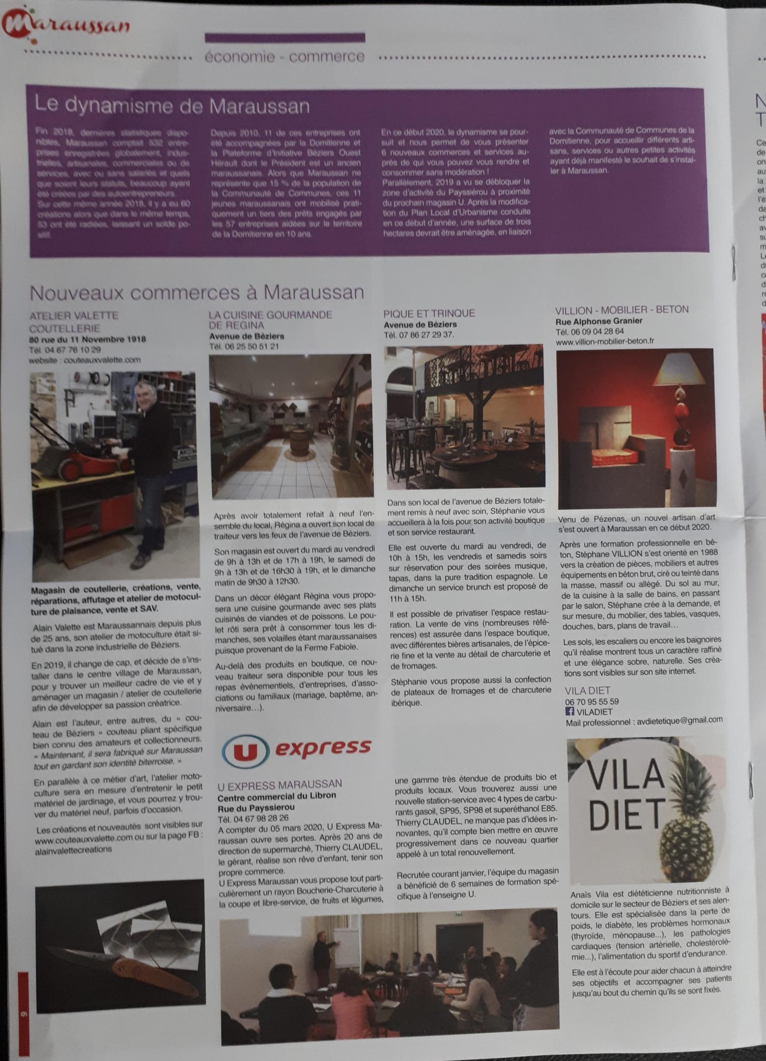 L’ouverture du magasin dans la presse locale Article mis en ligne le 4 octobre 2021 dernière modification le 29 novembre 2021 Quelques articles sur l’ouverture du Magasin dans la presse. Revue la passion des couteaux Journal de maraussan - fevrier 2021