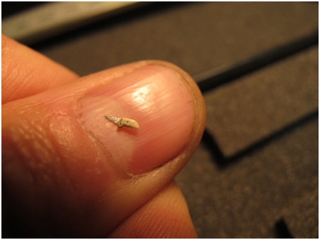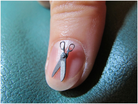 Dans ces dimensions inférieures au centimètre, le travail des matériaux nécessite une concentration extrême, des gestes précis et même des outils spéciaux que je fabrique sur mesure.