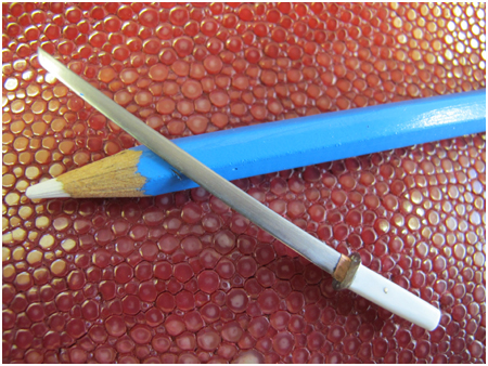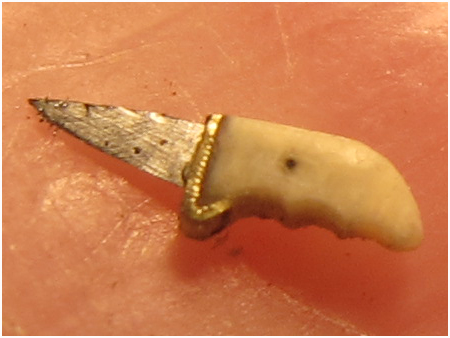 Dans le cadre du challenge anglais “British Blade”, fabrication du plus petit couteau réalisé en trois matières distinctes, je me suis amusé à réaliser les pièces ci-dessous parmi lesquelles un couteau Sgian-dubh à la dimension de 1.79 mm, qui est l’actuel n° 1 :