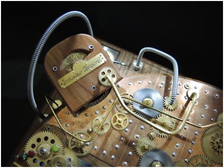 Tous les éléments constituant le style "steampunk" ainsi que la mécanique ont été réalisés, découpés, ajustés et brossés à la main par mes soins.