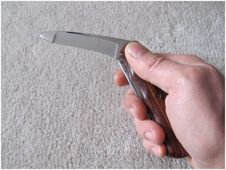 Si on considère une lame fermée à 0° et pleine ouverture à 180°, j’ai imaginé la position de blocage de lame idéal pour ce geste technique à 135°.