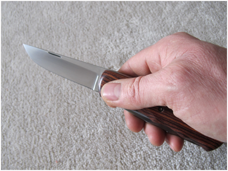La première lame est de type chasse classique, droite, avec une émouture en creux et un léger contre tranchant.