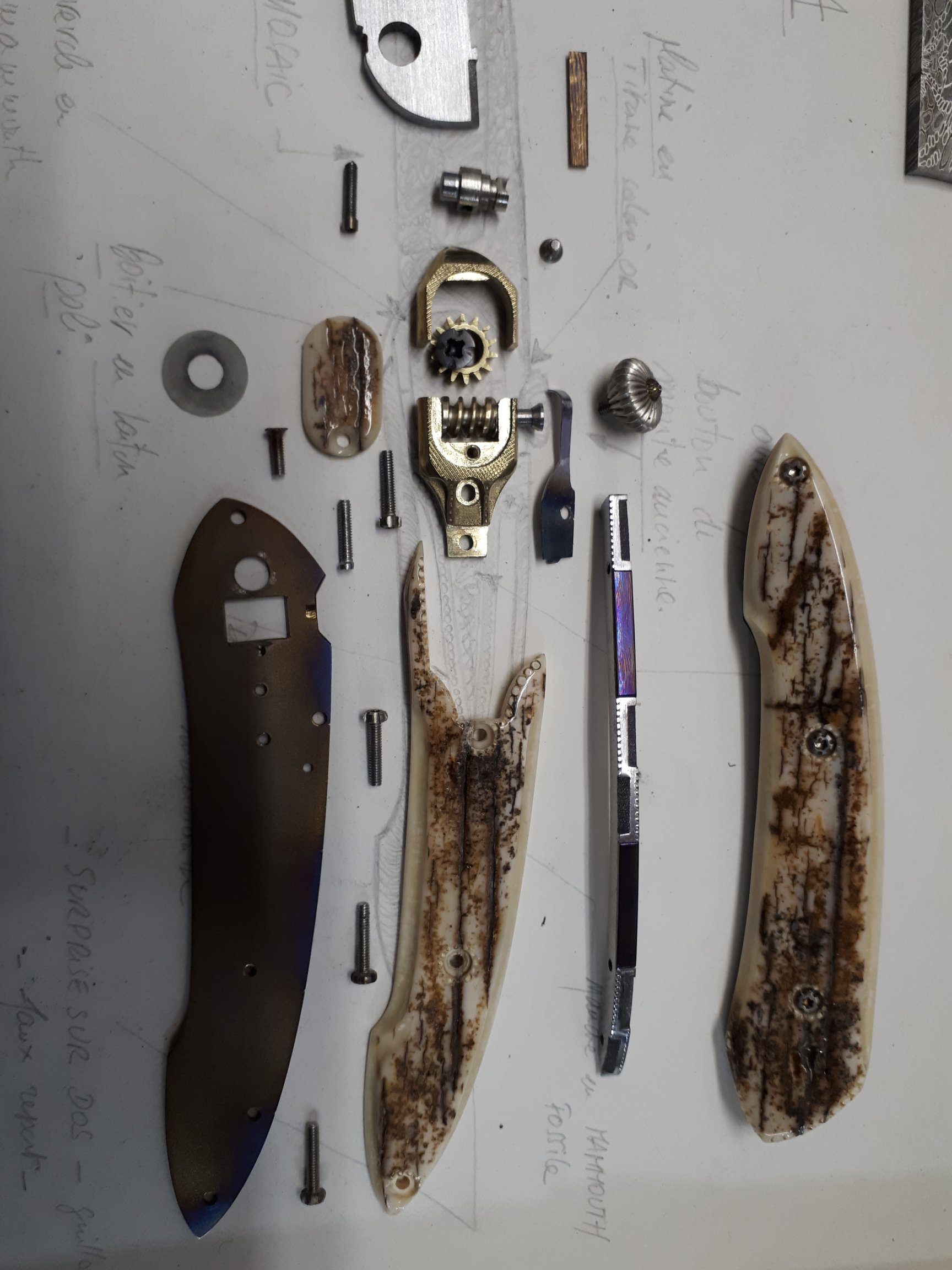 En 2021, un de mes collectionneurs de couteaux atypiques me posait un défi : lui fabriquer un couteau pliant à secrets multiples et inédits dont lui seul serait capable de l’ouvrir !